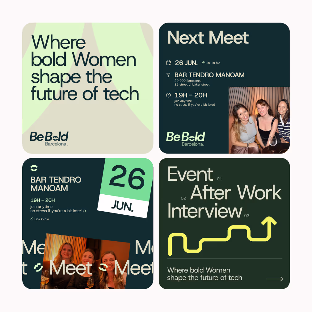 L’identité a été pensée comme un système flexible, capable de s’adapter aux formats événementiels, aux publications sur les réseaux sociaux et aux supports de communication de l’association, tout en conservant une signature immédiatement reconnaissable.